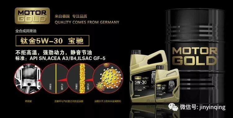 德国原装进口MOTORGOLD金引擎钛金宝驰5W30全合成润滑油,结合独特的降噪低摩科学配方,降低摩擦系数,可最大程度的减少摩擦损失,以增加功率和扭矩、降低发动机噪音及温度,从而有效的提高燃油效率。严格执行ACEA标准,高科技配方可确保较薄的油膜具有超强的油膜强度(HTHS>3.65),适合于所以涡轮增压及自然吸气发动机。