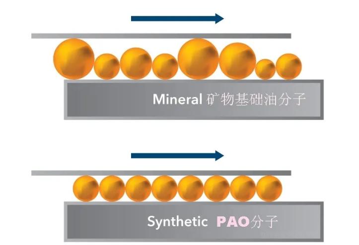 PAO 耐高温,分解少,在动机高温高转的工作期间不会发生化学变化,具有极佳的剪切安定性,也就是说形成油泥和漆膜的可能很小,稳定性可达矿物油的3倍或者更多。
