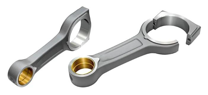 活塞连杆承受着活塞往复运转与曲轴旋转运动的交变弯曲载荷。一般采用40Cr等中碳合金钢锻造而成,并进行表面喷丸强化,以提高连杆的抗疲劳性。