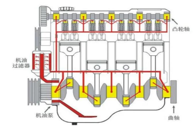机油不仅能够在活塞与气缸、主轴与轴承衬套等高速相对运动的部件间形成油膜,减少磨损,还能有效地将发动机产生的热量带回油箱,并通过散热系统将这些热量辐射到空气中,从而帮助冷却发动机,保持其正常工作温度。