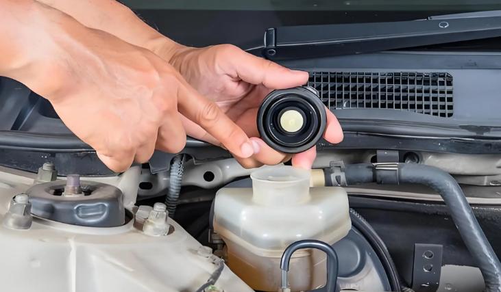 第一,就是刹车油盒上面的加油口盖。在这个加油口盖上,有一个通气孔,作用是平衡刹车油盒内与外界的气压。外界的空气通过这个小孔进入到刹车油盒内,空气中水分就会被刹车油吸收,从而导致刹车油含水量增高。在一些空气湿度很高的地区,刹车油中的水分主要是通过这个渠道进入的。