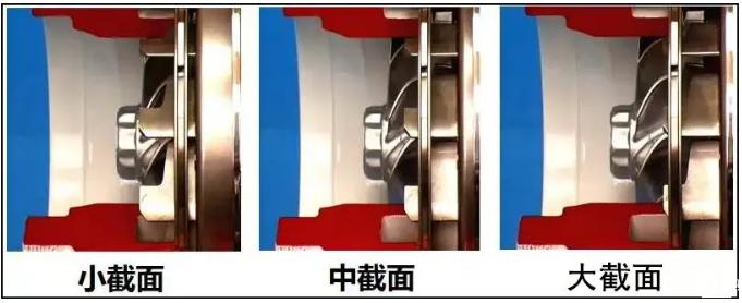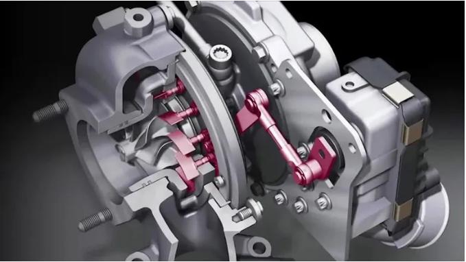 大众第五代EA888涡轮增压发动机就采用了这项技术,可变截面涡轮增压器具有可调涡流截面的导流叶片,通过调整涡轮叶片的角度,控制流过涡轮叶片的气体的流量和流速,从而控制涡轮的转速。