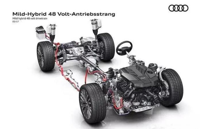 奔驰是最早尝试48V轻混系统的,C级(2018)、CLS级(2018)、S级(2018)、AMG GT53(2018)等车型都有使用BSG及ISG轻混。刚在海外率先上市中期改款奔驰GLE全系标配48V轻混。宝马7系开始尝试,后来X5全系搭配48V轻混,用的是ISG电机可以增加200nm的扭矩。第四代奥迪A8(D5)采用了BSG电机,但没有设计成扭矩辅助,但整体油耗降低了0.7L/100km。随后奥迪A6(2018)、A7(2018)、Q7(2020)、Q8(2020)、A4(2020)、Q5(2021)也都采用。目前都是加装了可以提供扭矩可以助力的BSG电机。