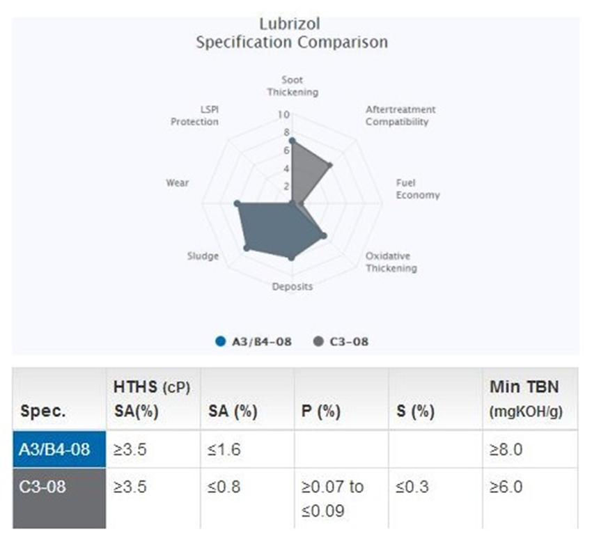 C3标准则是为催化式发动机润滑油而打造,特别适用于那些装备了DPF(颗粒捕集器)的柴油车型。同时满足低/中SAPS(硫、磷、灰分)的要求,高温剪切值不得低于3.5。