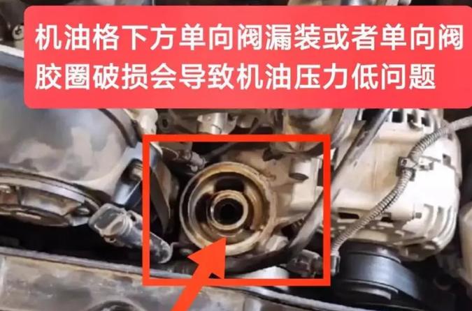 7、机油格下方单向阀漏装或者单向阀胶圈破损导致压力过低;