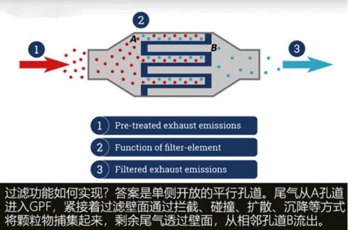 尾气颗粒物往往更多存在于缸内直喷发动机上,在发动机低温、低转速运转时,由于燃烧不充分导致氮氧化合物颗粒物增多,这些颗粒物无法通过传统的三元催化器去进行分解,只能通过GPF去进行收集,从而容易堵塞。