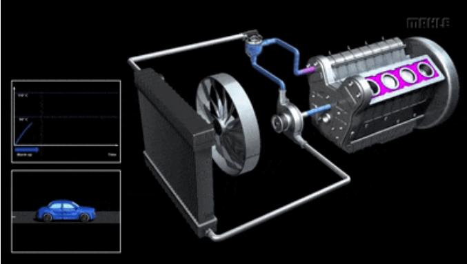 目前的燃油发动机,都是采用水冷系统,又被称为“强制循环水冷系统”,也就是以水作为冷却介质,通过气缸水道内的循环水进行冷却,将受热的水引入散热器(即水箱),经过风冷后,再重新流回水道内的往复循环过程。其核心组件水泵、散热器、冷却风扇、节温器、水套以及其他附加装置。