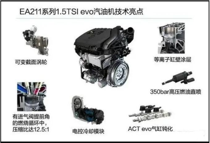 进口润滑油代理|大众1.5TEVOII发动机融合保时捷技术,采用米勒循环、中置VVT、气缸APS涂层、VTG涡轮等技术,实现高效动力与环保,最大功率118kW,扭矩250N•m,最主要的可以兼容92号汽油,动力性与经济性得到了结合,综合油耗为6L/100km。