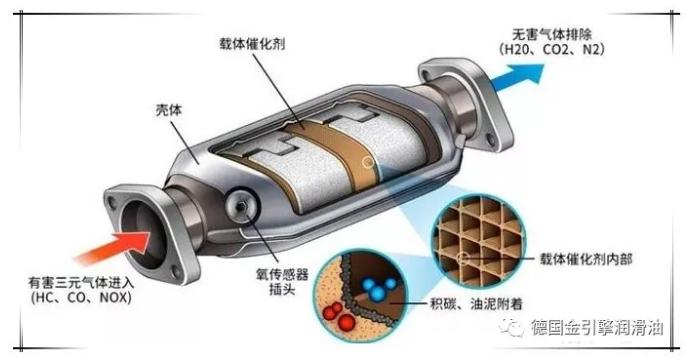 德国机油代理|发动机尾气除了有毒害的气体之外,还有一些颗粒物,比如汽油燃烧不完全产生的碳颗粒,发动机烧机油产生的污垢会附着在三元上。随着公里数越来越长,附着的脏东西越来越多,孔隙会变得越来越小,造成堵塞现象。