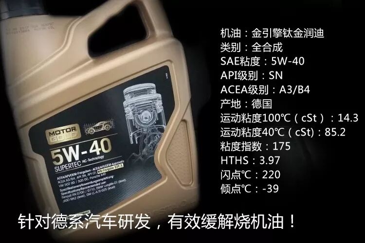 为什么重点说,德系车有着高昂的价格与挑剔的发动机,一旦机油选择不慎,好吧,“烧机油”会常常伴随着你,所以德系车往往需要使用0W40、5W40这种粘度的机油,而且机油参数中还要关注一个非常重要的指标,那就是HTHS,这项指标的数值大小表明了在高温高剪切力的环境下机油油膜的强度,这项数值对于德系车来说十分重要,一般要求该数值都要超过3.5以上。