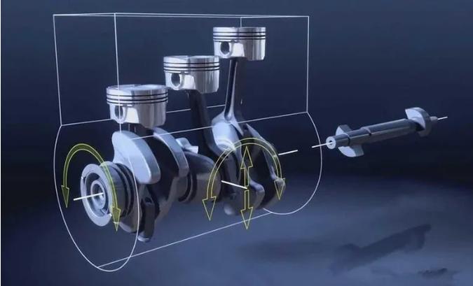 三缸发动机的三个活塞,在工作中的做功间隔角是240°,因此它们运转产生的惯性力永远不会抵消,所以三缸的振动是不可避免的。此外,三个气缸做功相差240°,这样每一缸做功结束后,就会有一个60°的空窗期,在这个期间,发动机是只消耗动力的,所以曲轴运转的不均匀度会更加明显,这也会导致发动机振动增大。