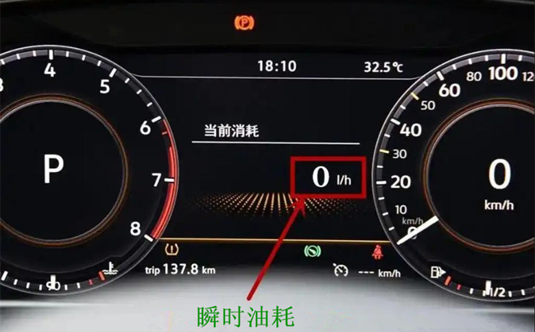 可随着时间的推移,发动机断油不对外输出动力会阻碍车轮的滚动,形成发动机制动,车速会逐渐的降低。此时的汽车电控单元会给出驾驶员要让车减速的判断,因此就会减少直至切断喷油,这也是为什么瞬时油耗显示为零。