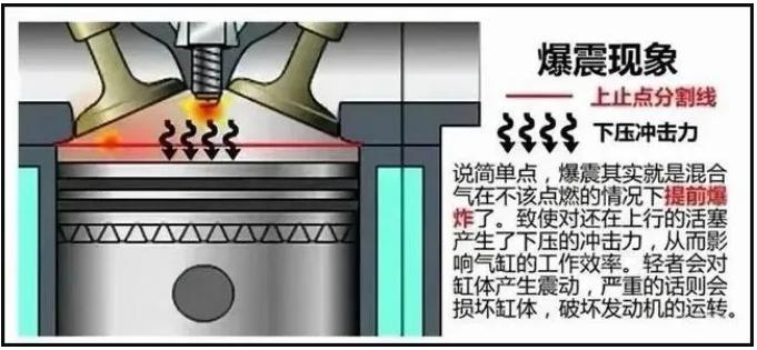 理论上来说,压缩比高,活塞压缩混合气体后,气体压力和温度高,由于汽油极易点燃的特性,在高压缩比带来的强压下,远离火花塞且还未被火焰传播点燃的火花会迅速产生自燃。点燃火焰、自燃火焰,这两种火焰发生对冲时即为爆震。爆震会让发动机功率下降,严重时还损伤部件。
