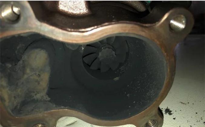 另外,涡轮内部也容易生成积碳,主要原因是浮动轴承,它是涡轮增压发动机的主要传动装置,浮在机油上运转,涡轮的工作转速非常高,在12万到16万转/分钟左右,这就导致它的工作温度也非常高,机油和涡轮主轴接触的时候,不可避免的会有部分的化学物质被烧焦,会产生碳化物,这也就是我们常说的积碳,沉积在涡轮的内部。如果机油高温稳定性差,更能促生积碳的沉积。