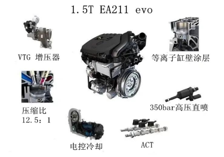 大众EA211 1.5T发动机的无缸套设计,为了加强耐磨性和使用寿命,采用了APS大气等离子喷涂技术,通过0.3mm铁基涂层实现单部件减重2.81kg,激光毛化工艺制造的微米级储油结构使摩擦系数降低40%,热传导效率提升15%,整体减轻了发动机的重量并改善了散热性能。途观L300和朗逸都搭载了这款1.5T无缸套发动机。