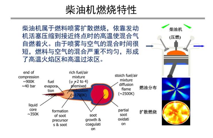 而柴油发动机油门控制的是喷油量,柴油粘度大、不容易与空气迅速混合,柴油发动机启动节气门即保持最大开度,区别于汽油机的量调节,柴油机则采用的是质调节。在质循环中,进气量始终恒定、不发生任何改变,而发生改变的则是喷油量。柴油粘度大、不易挥发的特点决定柴油机要采用质循环且必须要进行压燃而非点燃。活塞先压缩空气使其温度高于柴油的燃点(220℃)此时再把柴油喷进气缸即可。