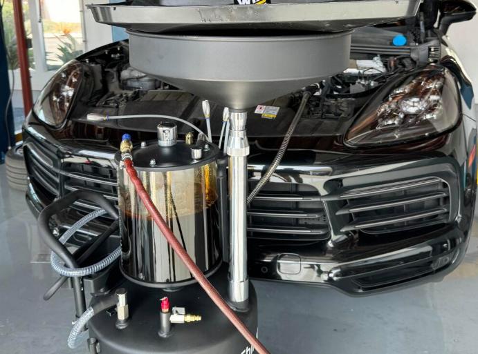 使用抽油机通过机油尺孔或压缩空气辅助抽取,虽可清除约80%的旧油,但仍无法达到100%。