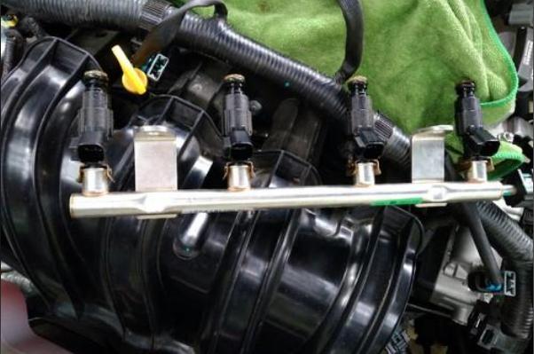 这种方法不需要拆卸喷油嘴,只需将清洗液与汽油混合后注入清洗设备的储液瓶内,连接专用的清洁工具和燃油喷嘴的供油管接头,启动发动机并保持怠速运转,直到清洗液用尽,清洗结束。