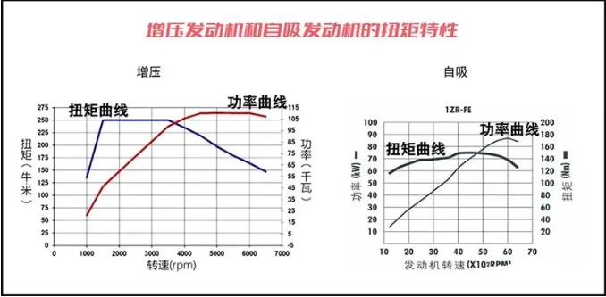涡轮增压发动机通常在1500–4000 rpm区间维持最大扭矩,形成“扭矩平原”;而自吸发动机的最大扭矩往往出现在4000 rpm 以上,低转速时响应较弱。